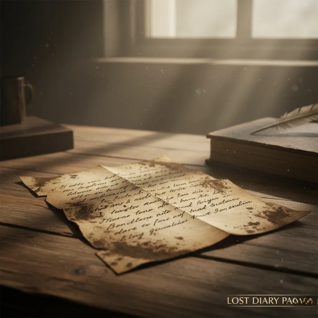 一张沾染着墨迹和泥土的旧日记残页,上面的字迹有些模糊,似乎记录着一段未完的故事或秘密。也许它能揭示某个隐藏任务的线索。